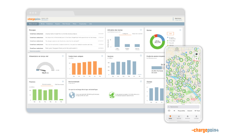 Que ce soit pour une flotte de véhicules, un bâtiment commercial ou un domicile, opter pour une plateforme unifiée équipée d'un logiciel avancé couvrant tous les aspects de la recharge garantit une mise en œuvre efficace. Cette approche facilite également l'adaptation progressive aux besoins variés du programme de recharge. Par exemple, les locataires de vos bâtiments peuvent souhaiter proposer la recharge de véhicules électriques à leurs employés en plus de la recharge de la flotte d'entreprise. Votre personnel, ou le personnel de votre locataire, peut s'appuyer sur le logiciel ChargePoint pour gérer la recharge des véhicules des employés au bureau, tandis que les gestionnaires de flotte peuvent optimiser les coûts de recharge et la disponibilité de la flotte, le tout à partir d'une même plateforme puissante. Le logiciel relie le tout et permet de gérer la recharge pour tous les cas d'utilisation.