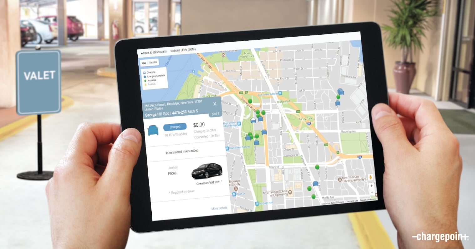 A great tool for businesses such as hotels or performance venues, Valet’s simple map view provides a clear picture of the charging status of vehicles that are currently plugged in and which spots are available, making it easy for valet attendants to identify available charging spots and to switch out vehicles that have finished charging for those in need.