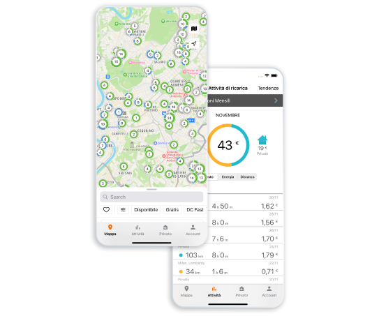L'unica app di ricarica di veicoli elettrici all-in-one che funziona perfettamente a casa, al lavoro, in città e in viaggio.
